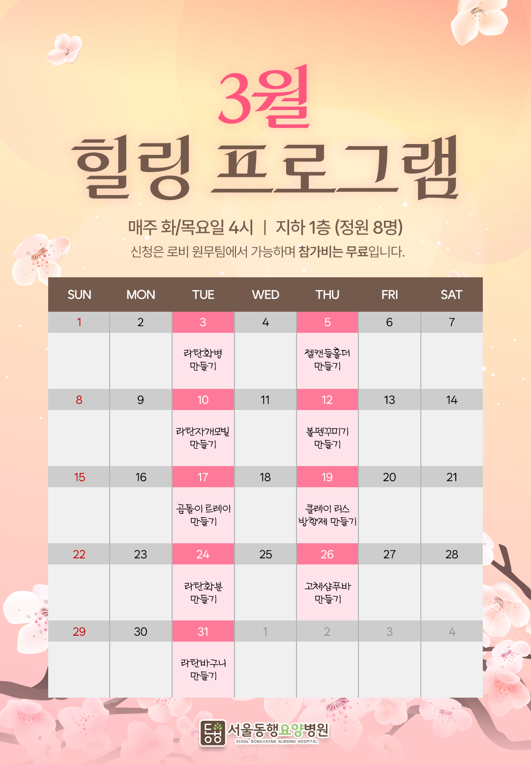 암 이후의 건강한 삶을 위해 동행이 함께 합니다. 다양한 재활 프로그램을 통해 건강한 재활을 도와드립니다.